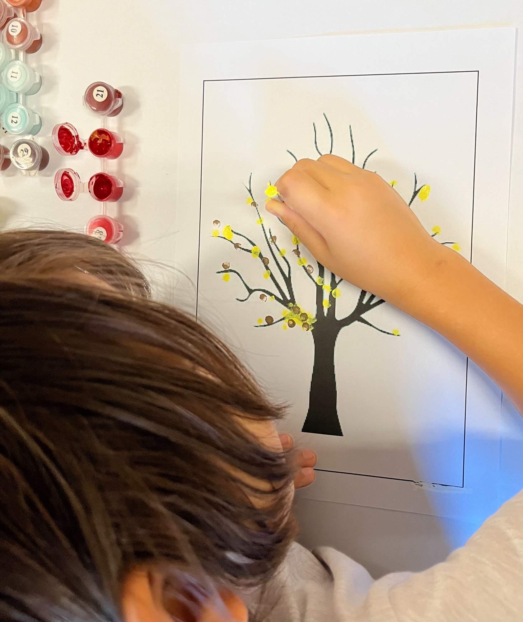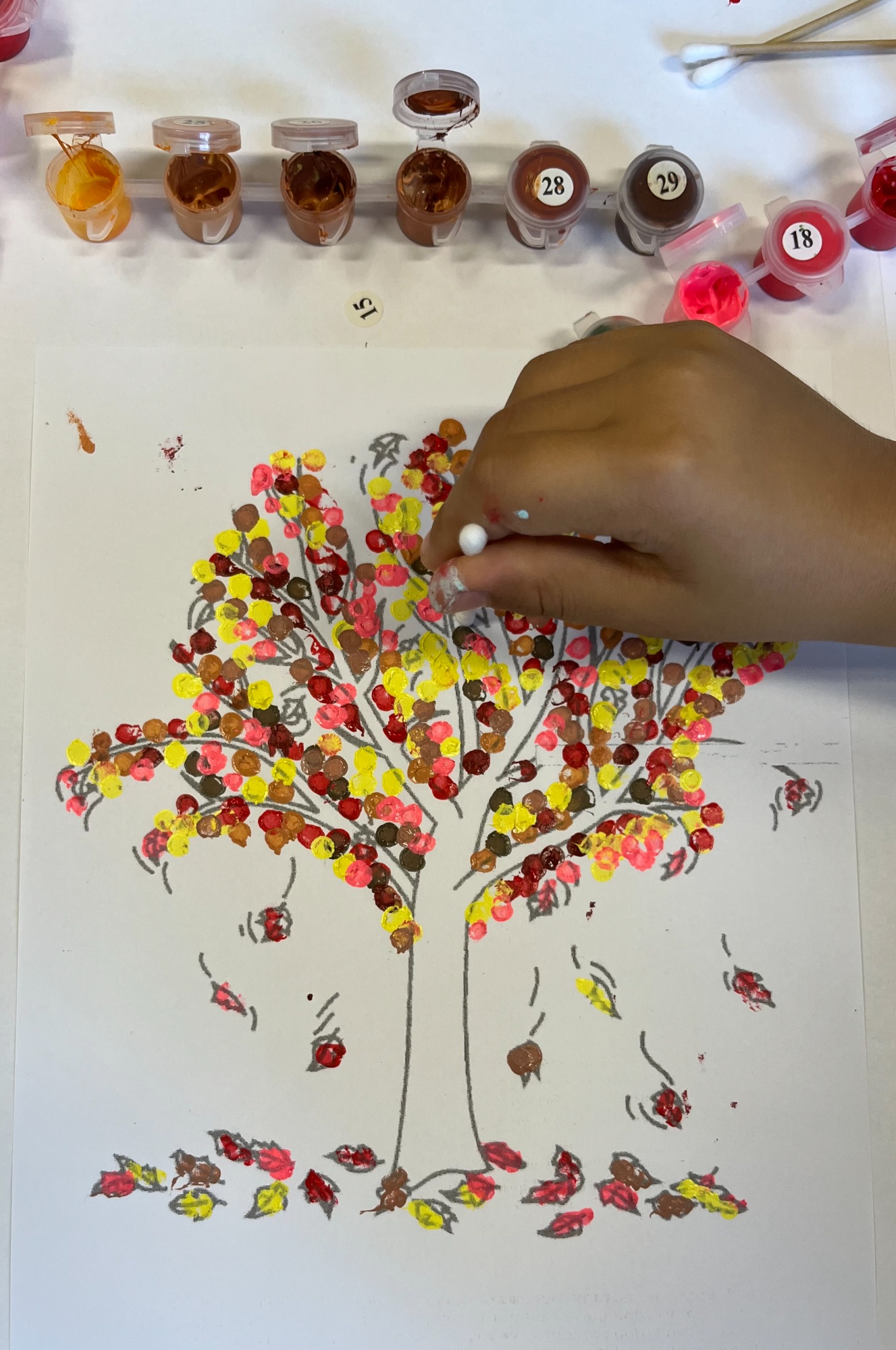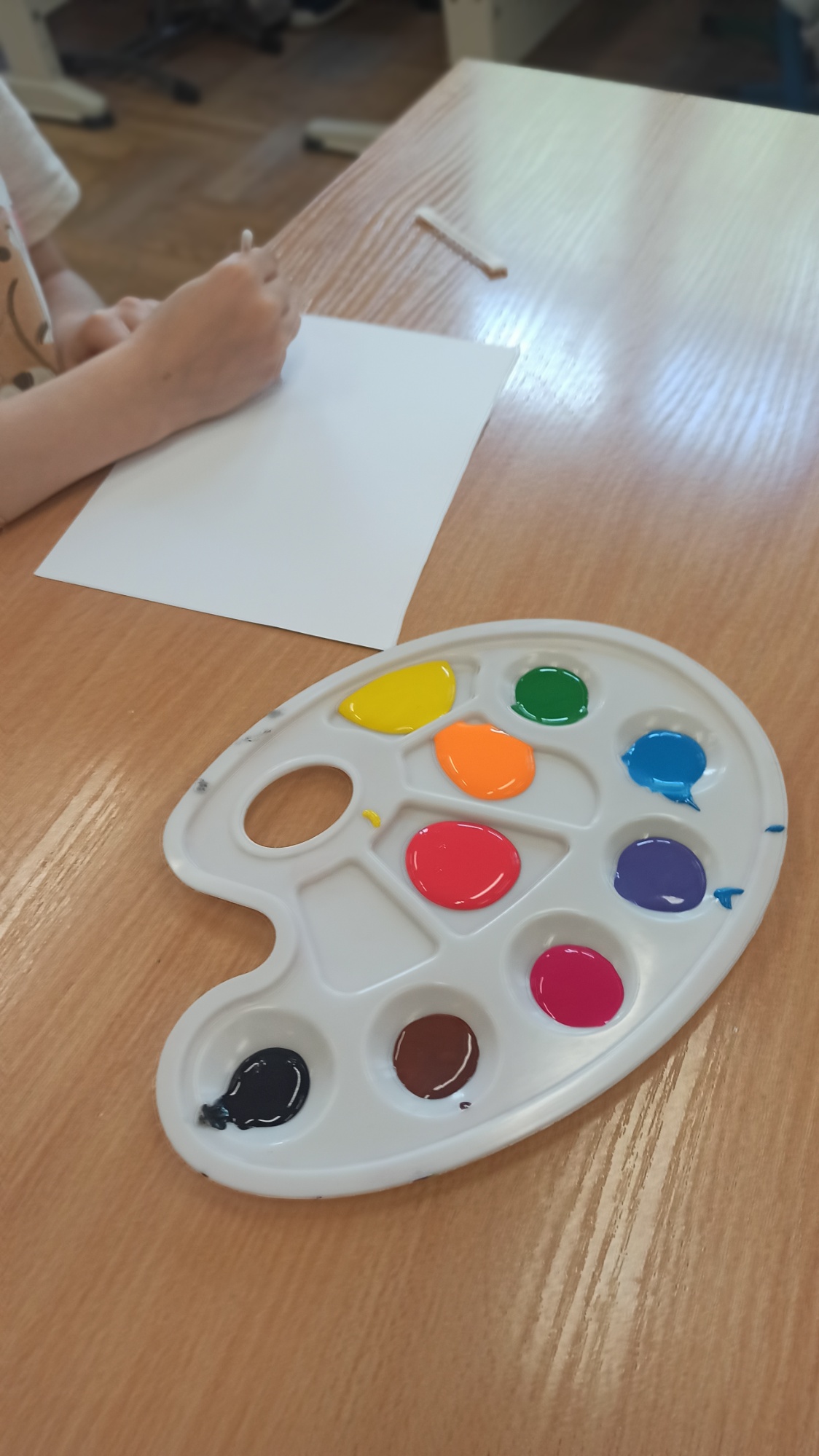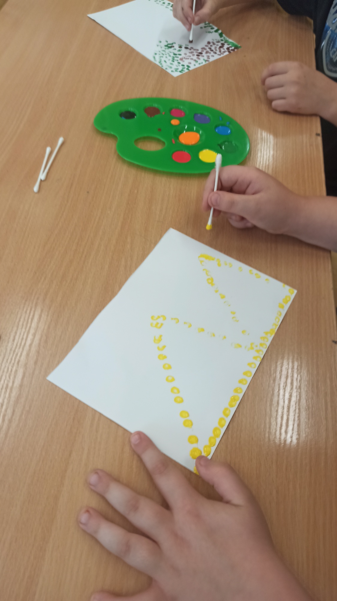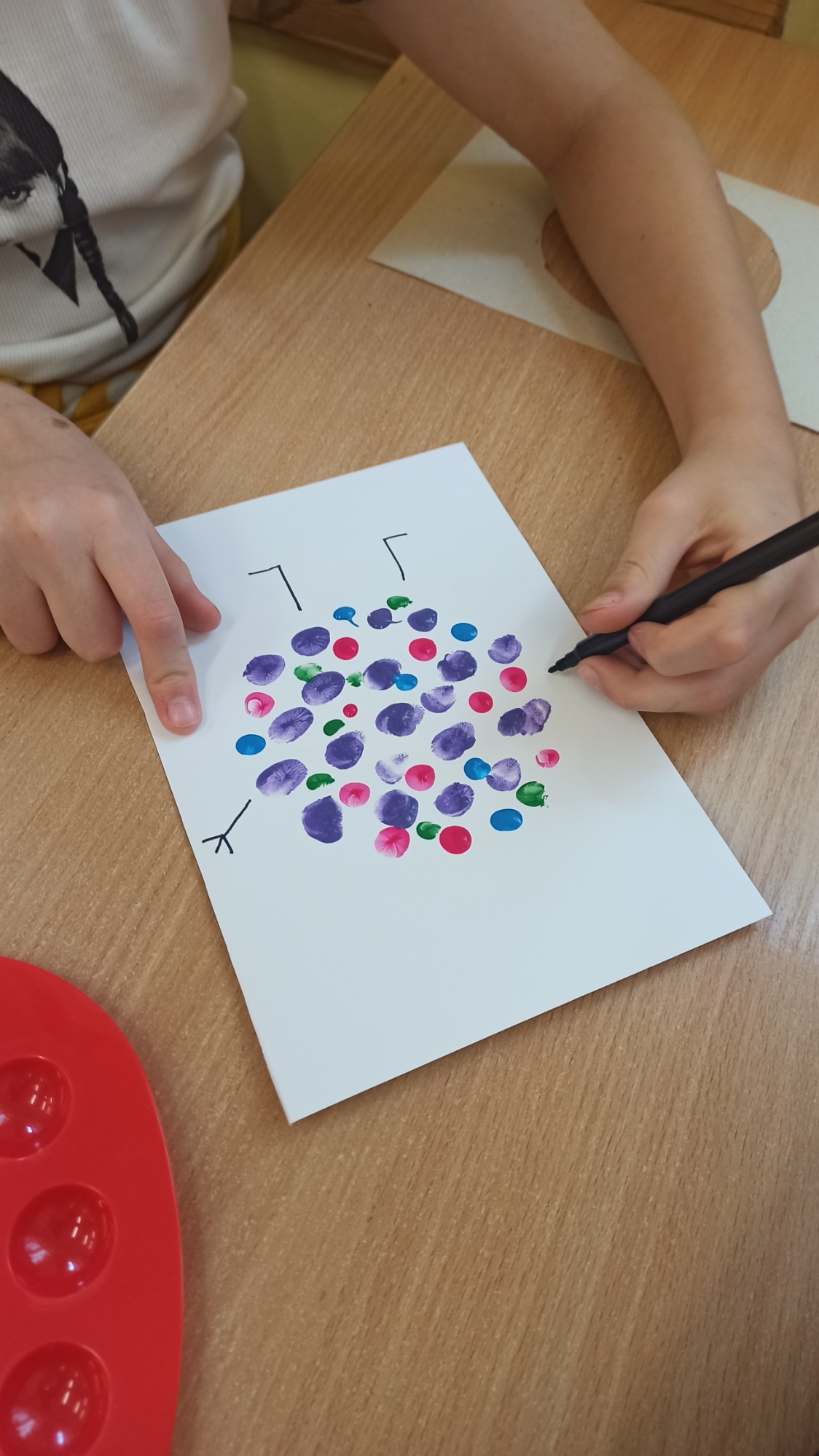 Na początku obejrzeliśmy krótką bajkę o Vashti – dziewczynce, która dzięki jednej małej kropce odkryła swój talent i zaczęła wierzyć w siebie. Potem sami zamieniliśmy się w małych artystów. Nasze kredki, farby i wyobraźnia poszły w ruch, a na kartkach pojawiły się kropkowe dzieła sztuki: kolorowe mandale, zabawne kropkowe stworki, a nawet całe obrazy tworzone tylko z kropek!