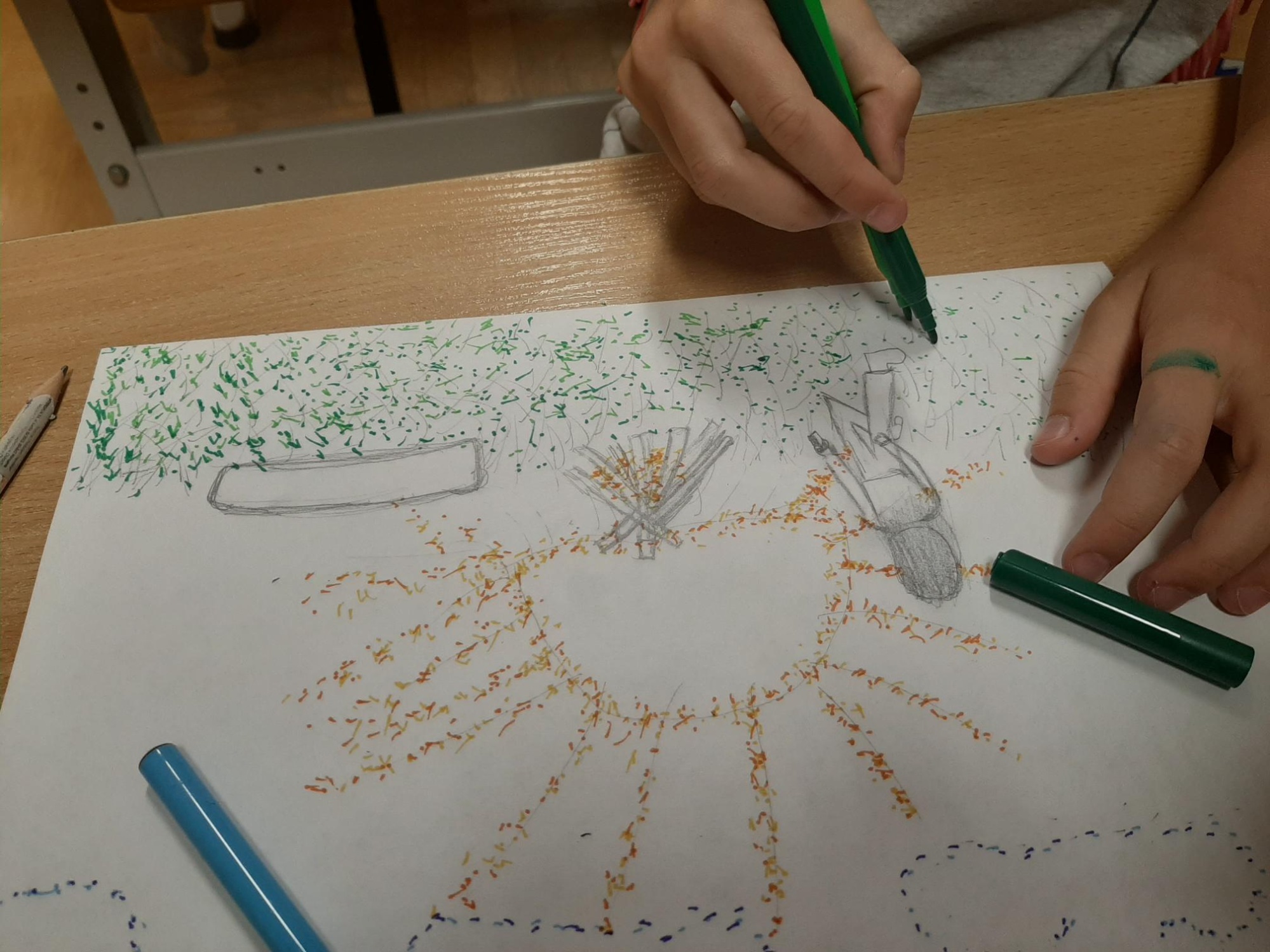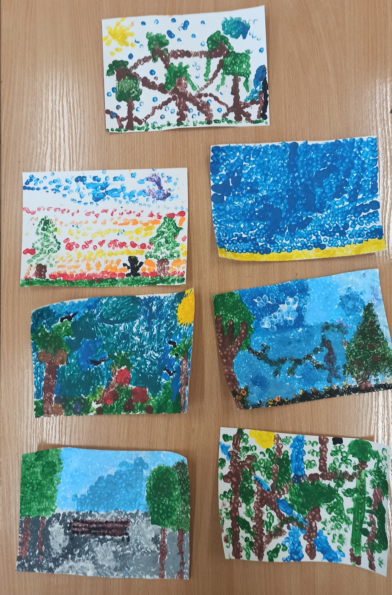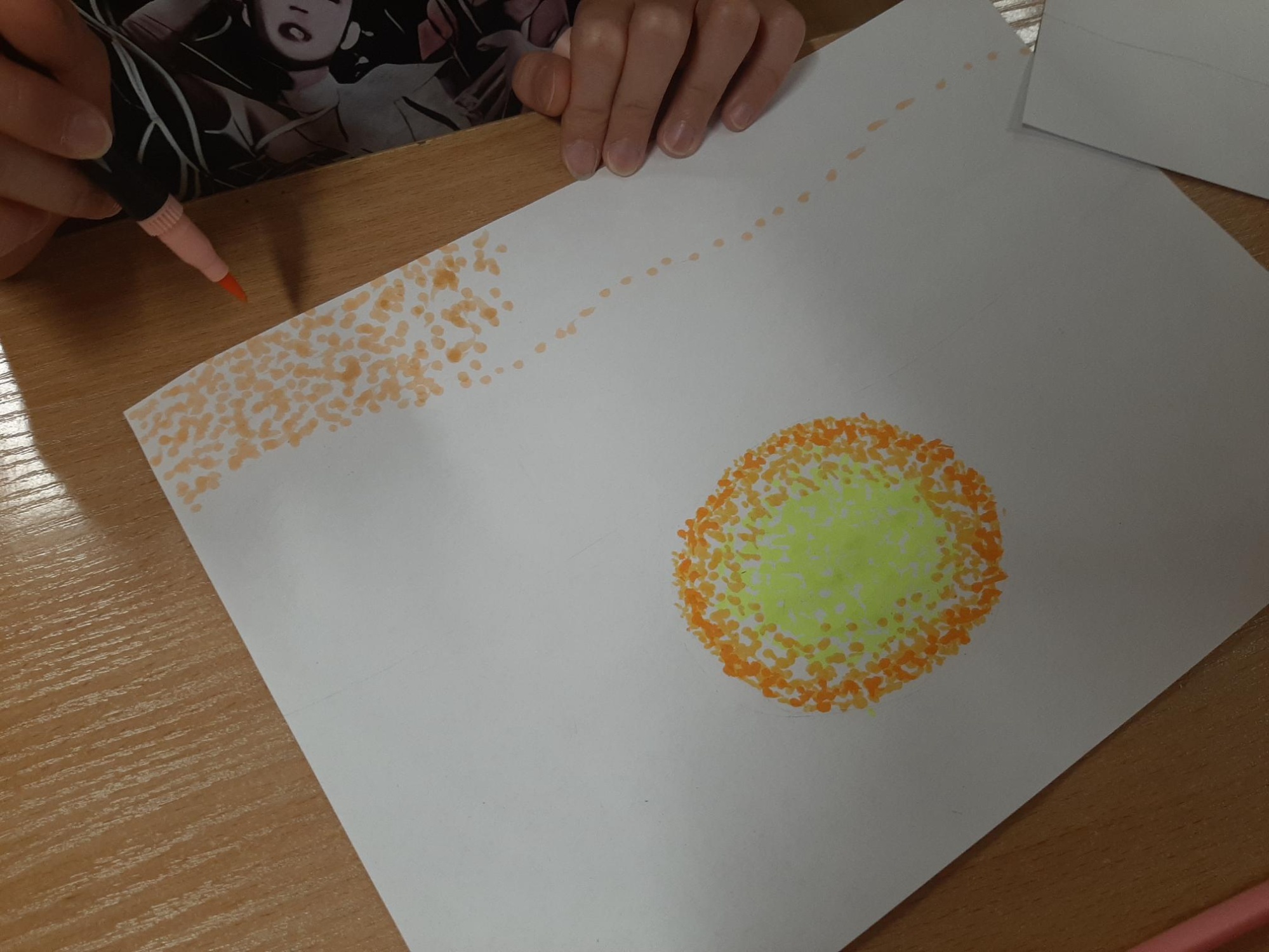 Podczas zajęć uczniowie z grupy 3B zapoznali się także z twórczością neoimpresjonistycznego malarza Georga Seurata i sami spróbowali swoich sił w technice puentylizmu – malując obrazy z tysięcy małych kropek.